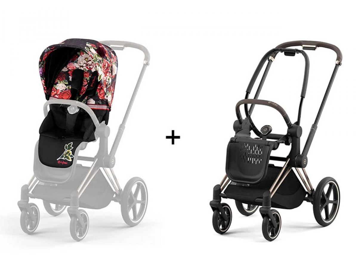 BU718 – Poussette PRIAM 4 Châssis Rose Gold Cloud Z2 Spring Blossom Light – Cybex Platinum