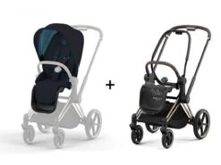 CYBEX BU586 – Poussette PRIAM 4 Châssis Rose Gold Habillage Midnight Blue Plus (Tissu Premium)
